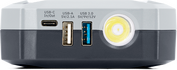 Equipped with 2 USB ports and a 15 V - 10 A output port ideal for powering a 12 V electrical device.